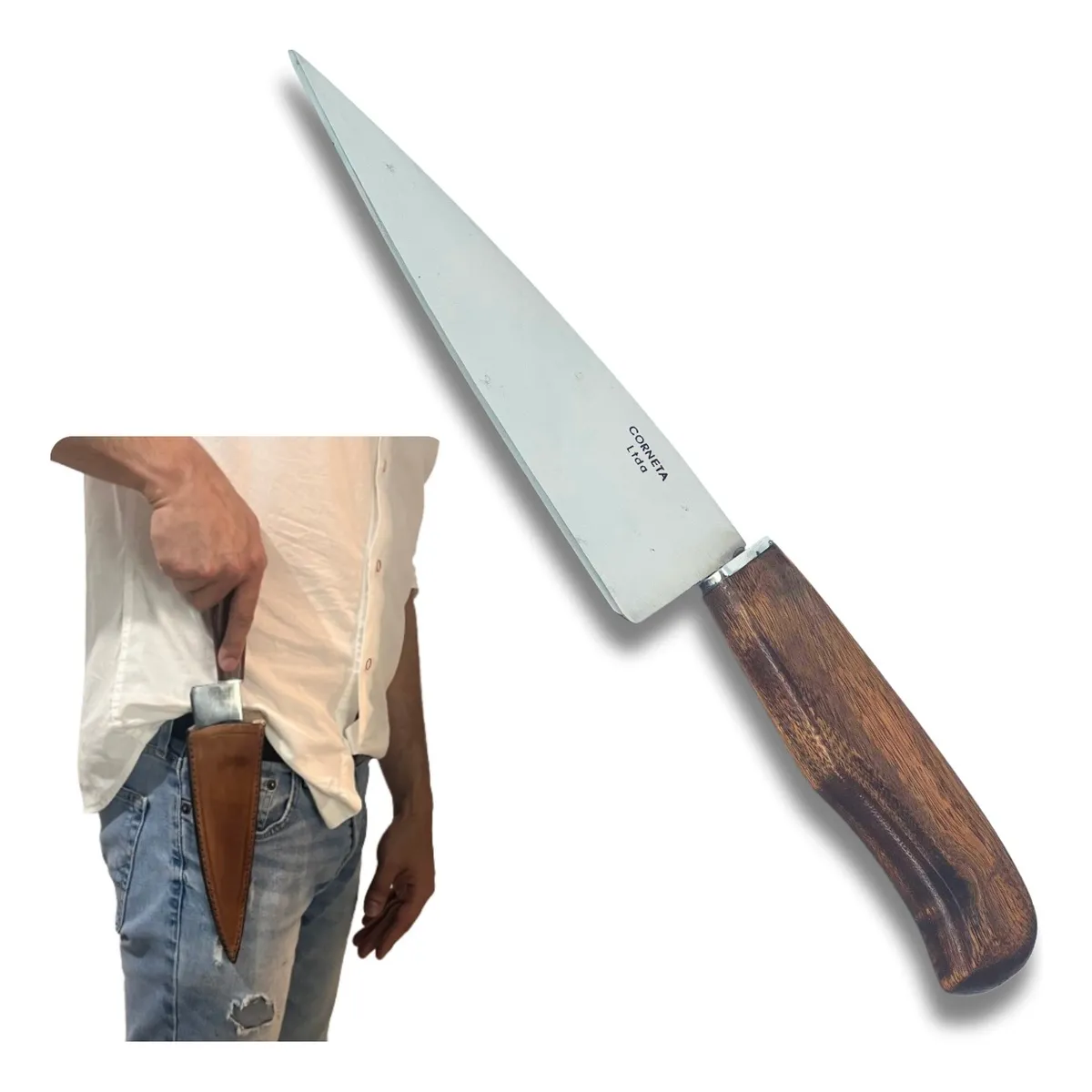 FACA ARTESANAL TIPO PEIXEIRA - LÂMINA DE TESOURA CORNETA COM BAINHA